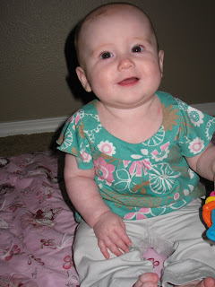 n is 6 months old as of last Wednesday (May14). She has a cold and since we're still fairly new to the whole parenting gig, we've taken her to the doctor twice in the past week to make sure that that's all it is. Poor baby has a real cough and a constantly running nose. I've often wondered why the body finds it necessary to make so darn much mucus. Is it bored? I know that physically it helps to flush the body of toxins and bad stuff and protect the passageways (like an obstacle course - read ob-stackle for all of you that love the movie "O' Brother Where Art Thou"). Anyway, so she'll have her official 6 month checkup this Friday and we'll have the "official" stats of her growth. When I took her to the doctor last monday (before she was actually 6 months) she was 15 lb 11 oz. Whew, what a chunker! We're so proud of her, she's growing so well and so fast. We're so honored to be her parents and enjoy having her in our lives. Ok, enough sap, I'm going to make myself cry and you vomit, but once again, it's too late to take it back.